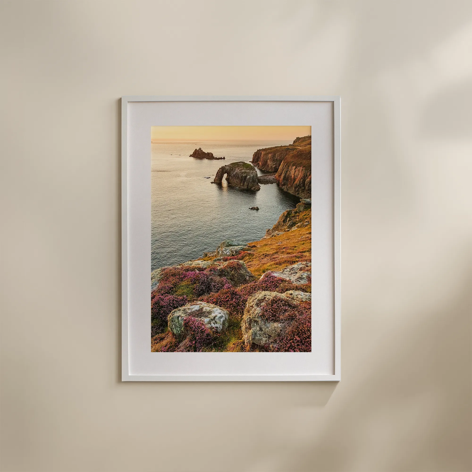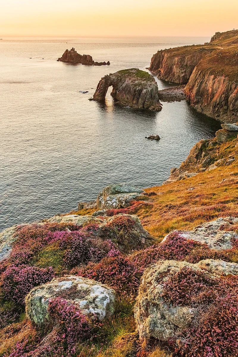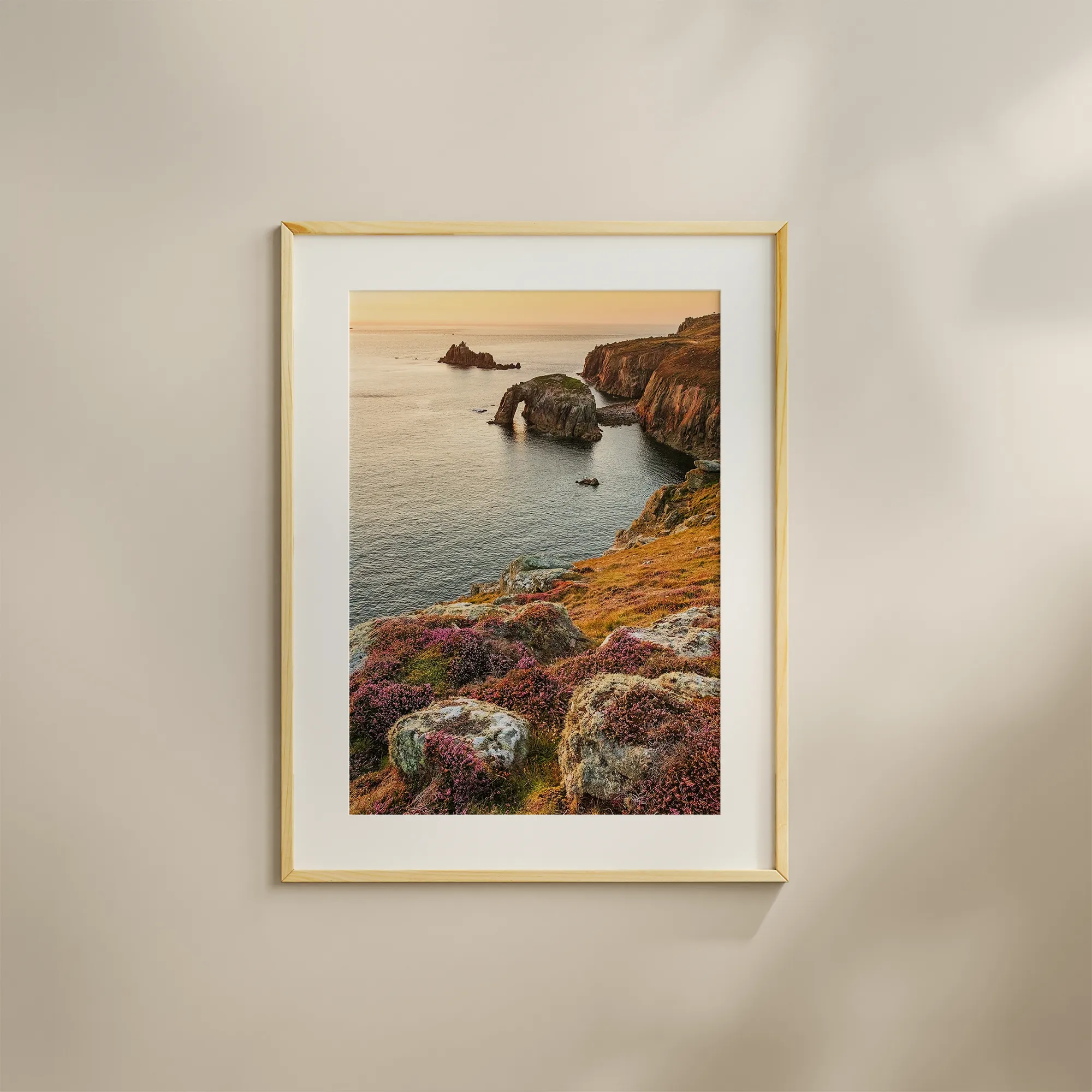 Take a moment to enjoy the Enys Dodnan Arch Sunset Print, a piece that brings a sense of calm and natural beauty into your space. The golden light of sunset gently illuminates the iconic arch, letting you soak in the warm, soothing hues of the setting sun.
